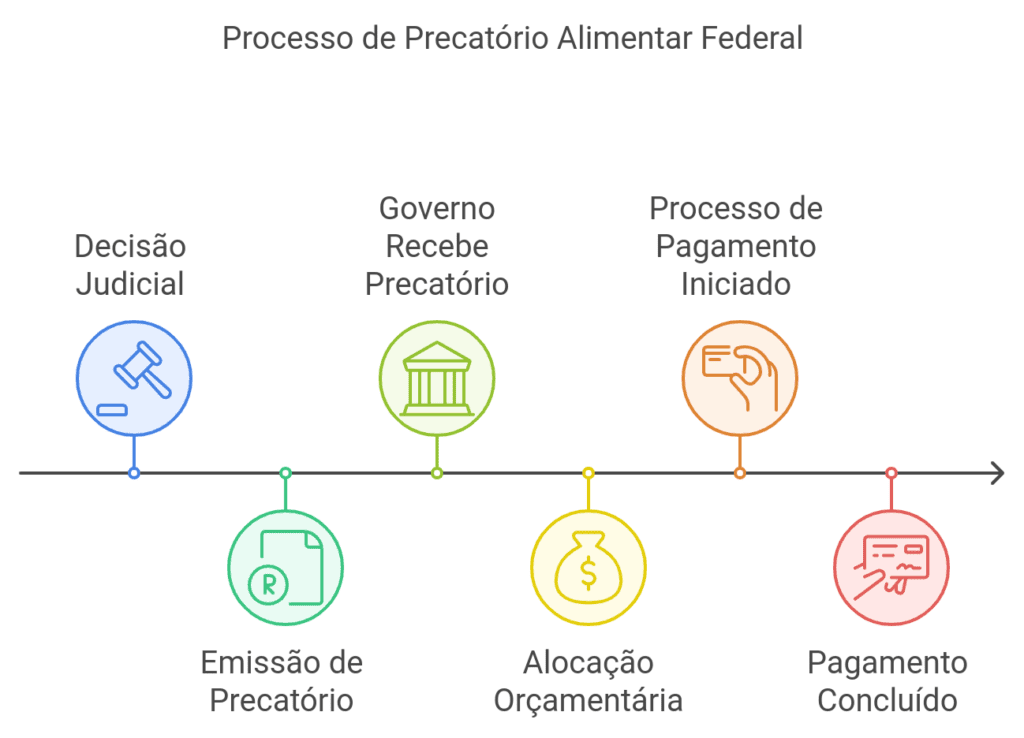 O precatório federal alimentar funciona como uma requisição de pagamento emitida pelo Tribunal após uma decisão judicial favorável.